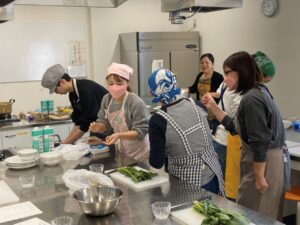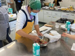 11月15日、群馬県邑楽町中央公民館にて、JICA海外協力隊員として2年間トンガ王国に赴任された有馬里実グレイさん(職種:障害児者支援)が地元の特産品を使ったトンガ料理の作り方を紹介し、参加者8名と一緒にトンガ料理の「ループル」(ルーはタロイモの葉、プルは牛肉を表すトンガ語)と「オタイカ」(オタは生、イカは魚を表すトンガ語)を作りました。地元食材として邑楽町産のホウレンソウやキャッサバ、そして群馬産の牛肉を使いました。ベースになる味はココナツミルクです。ループルが蒸しあがる間、有馬さんがトンガの文化、習慣、経験談などを紹介してくださり、トンガ料理を堪能しながら楽しい時間を過ごすことができました。今後も地元食材を使ったトンガ料理講座を各地で開催して、トンガと日本の交流に繋げたいと考えています。
